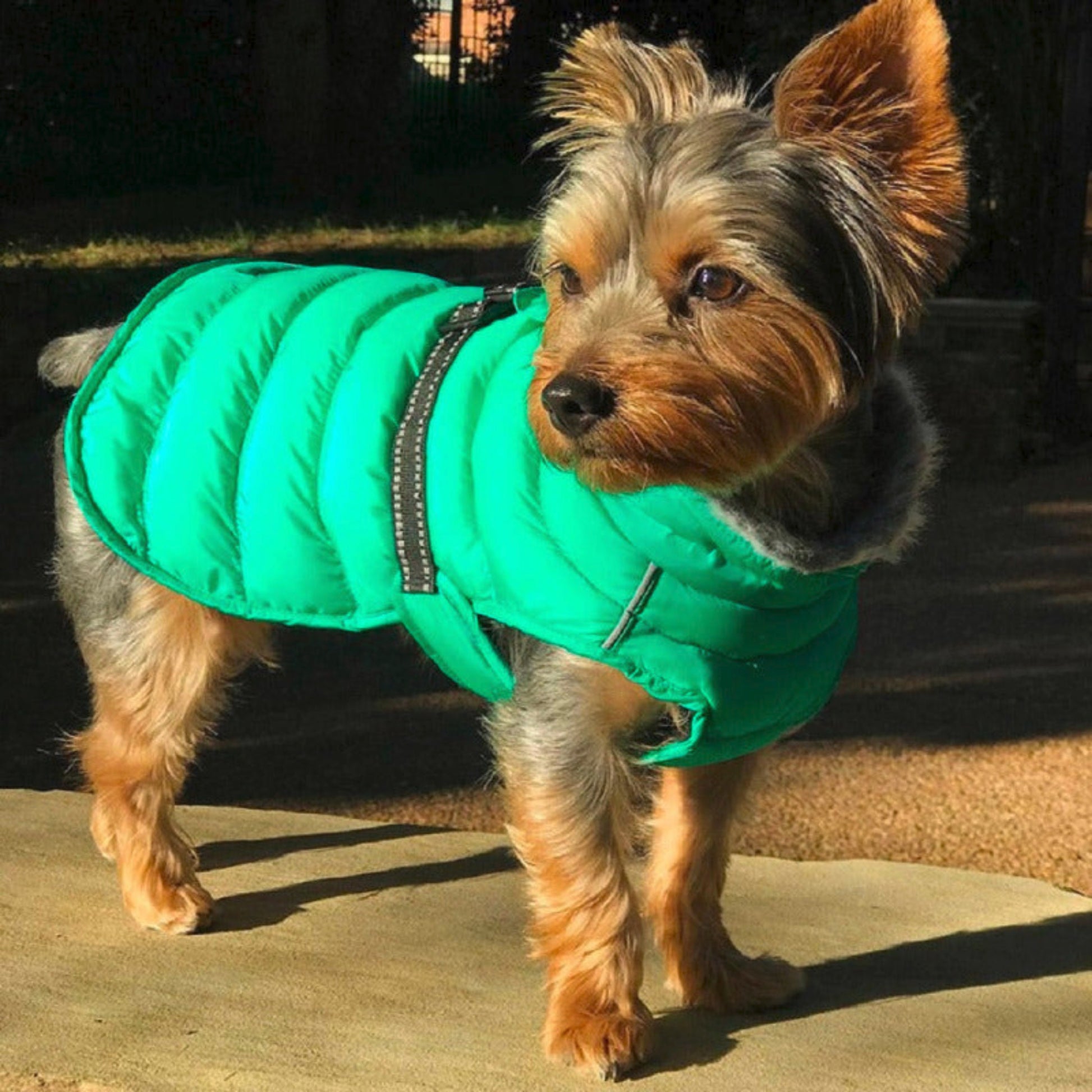Our Puffer Coats are perfect for all types of outdoor adventures. Made with a waterproof exterior, this coat is perfect for keeping your dog warm and dry. Lined with thick fleece and filled with warm fiber insulation, your pup will be ready to take on the trail ahead. We have worked tirelessly to ensure a perfect fit for dogs of all shapes and sizes; from a 3-pound pup to a 150-pound pooch, the Puffer Coat is sure to be a perfect fit every time. Featuring a simple design that slips over the dog’s head and a quick snap of the adjustable buckle over the back with a leash hole for easy walking.