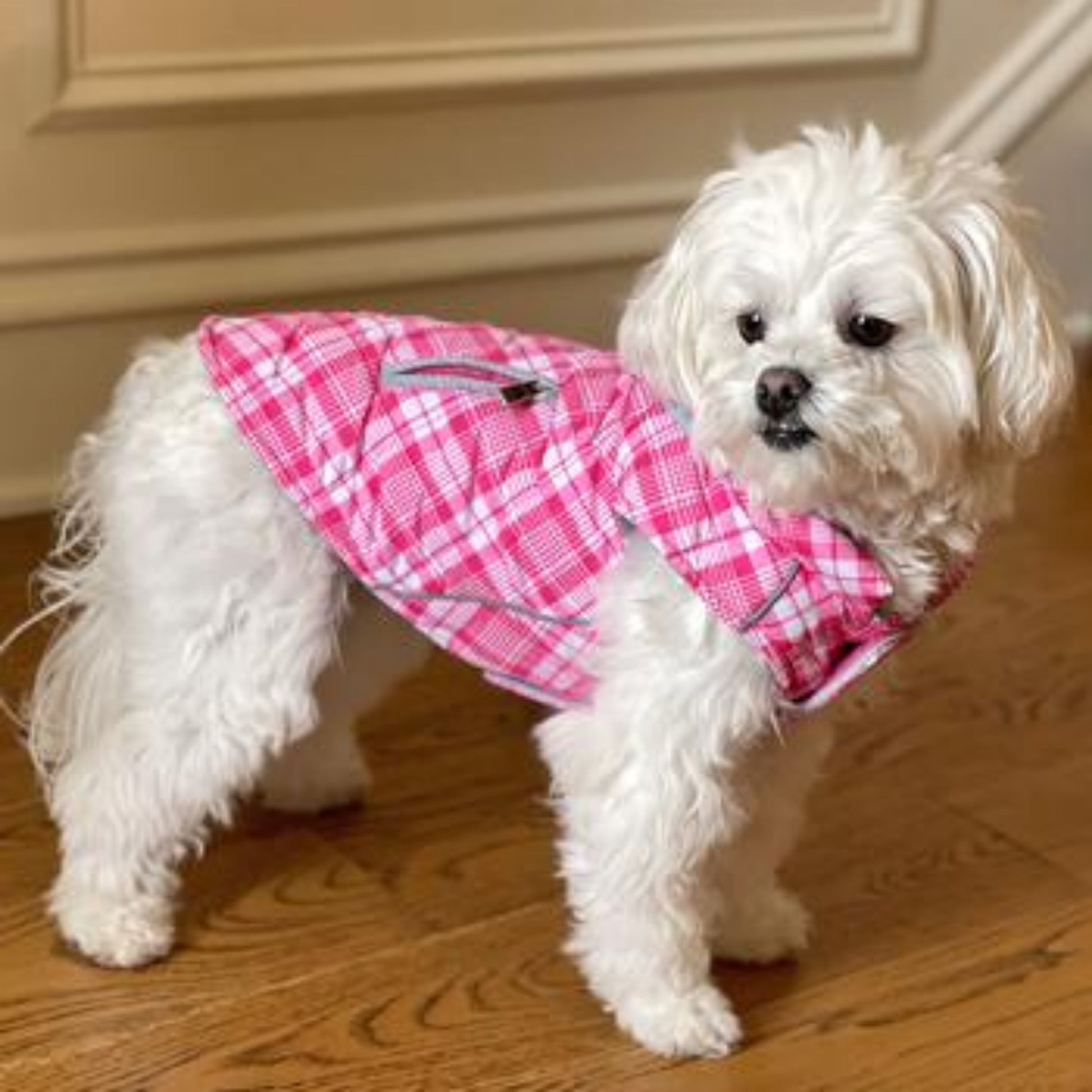 Weekender Dog Sweatshirt Hoodie Pink & White Plaid