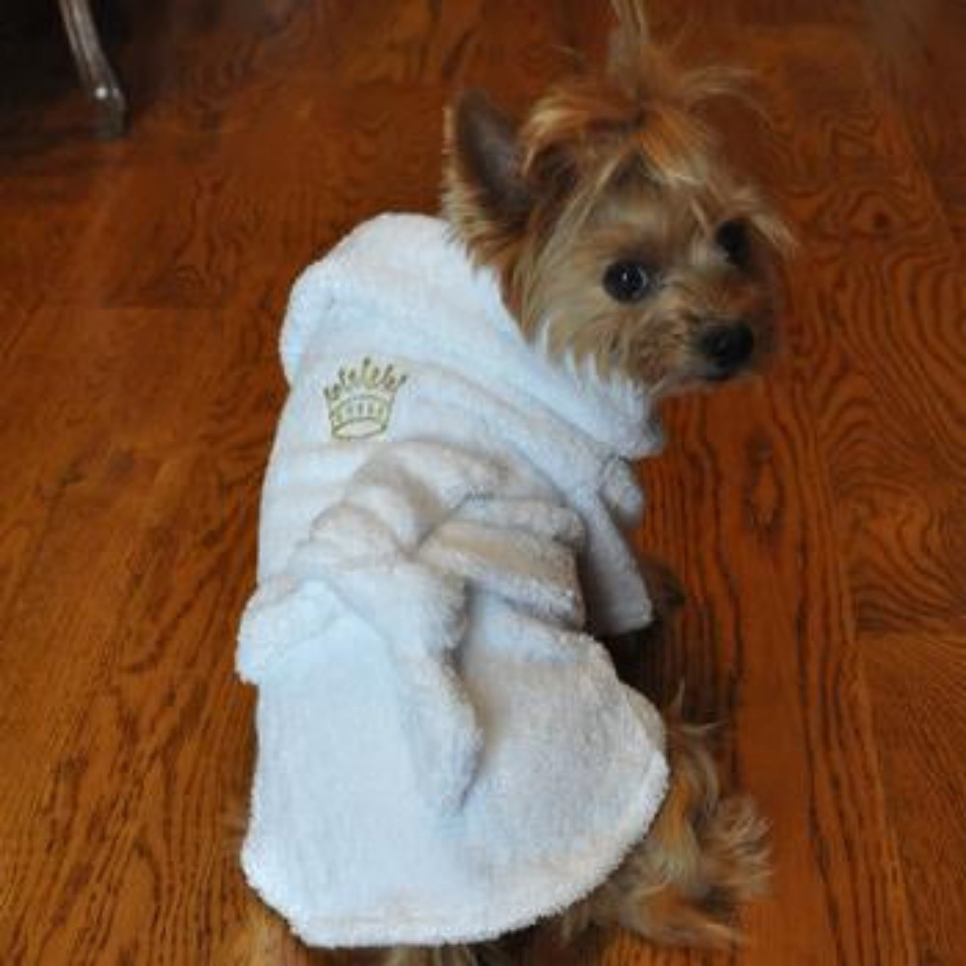 White Gold Crown Cotton Dog Bathrobe